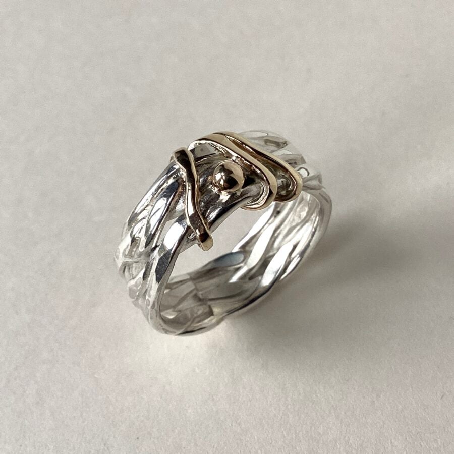 Initially specialising in techniques of metal inlay she now works primarily in silver and gold with an emphasis on exploring many different characteristics that can be found within the metals and their juztaposition. The use of strong lines and contrasting textures being a feature of her work.