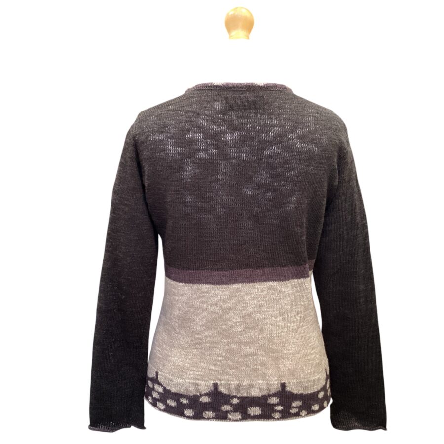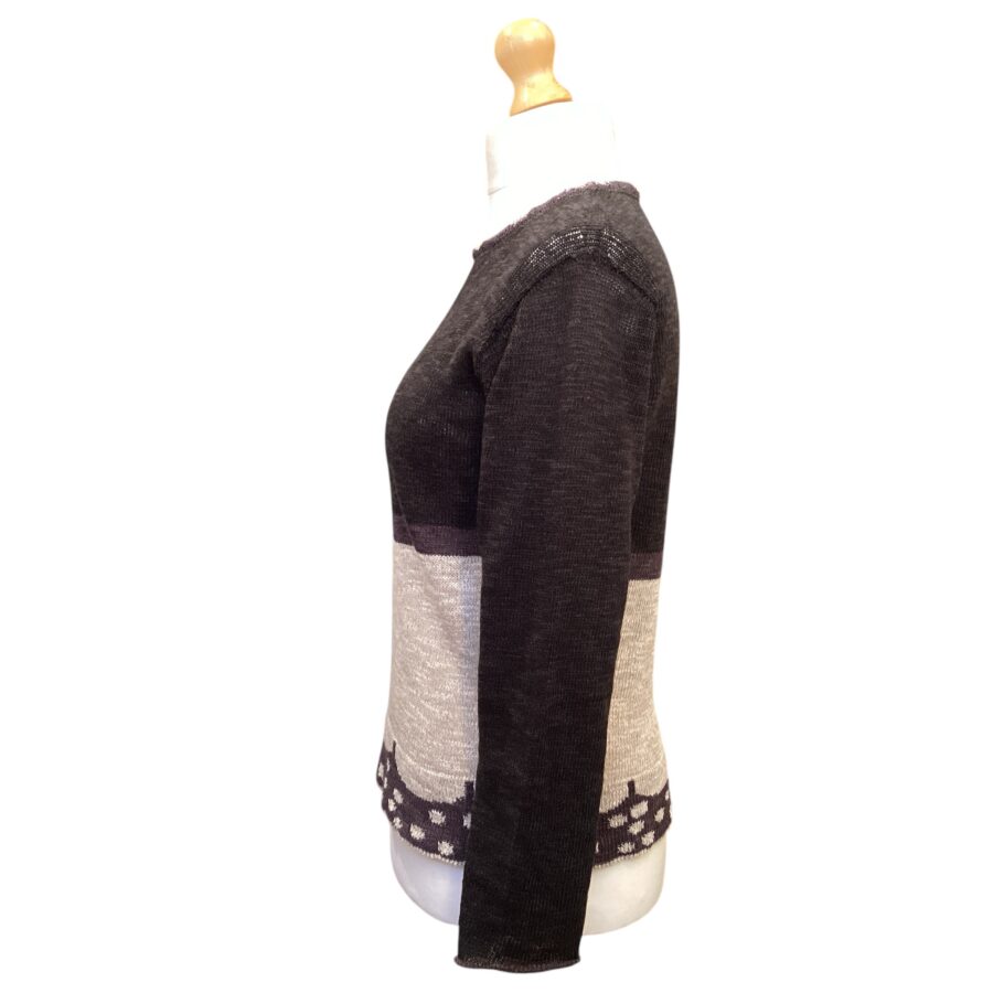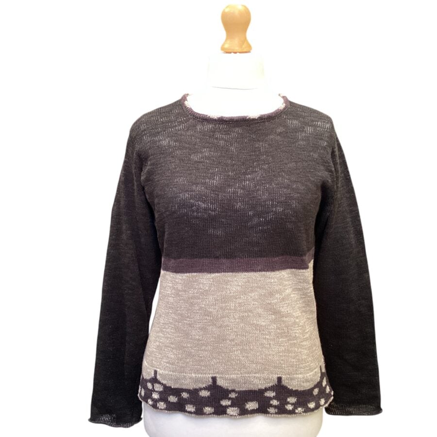 Lightweight linen and cotton, pullover style, with long sleeves, using simple but bold styling to create a lovely striking top.