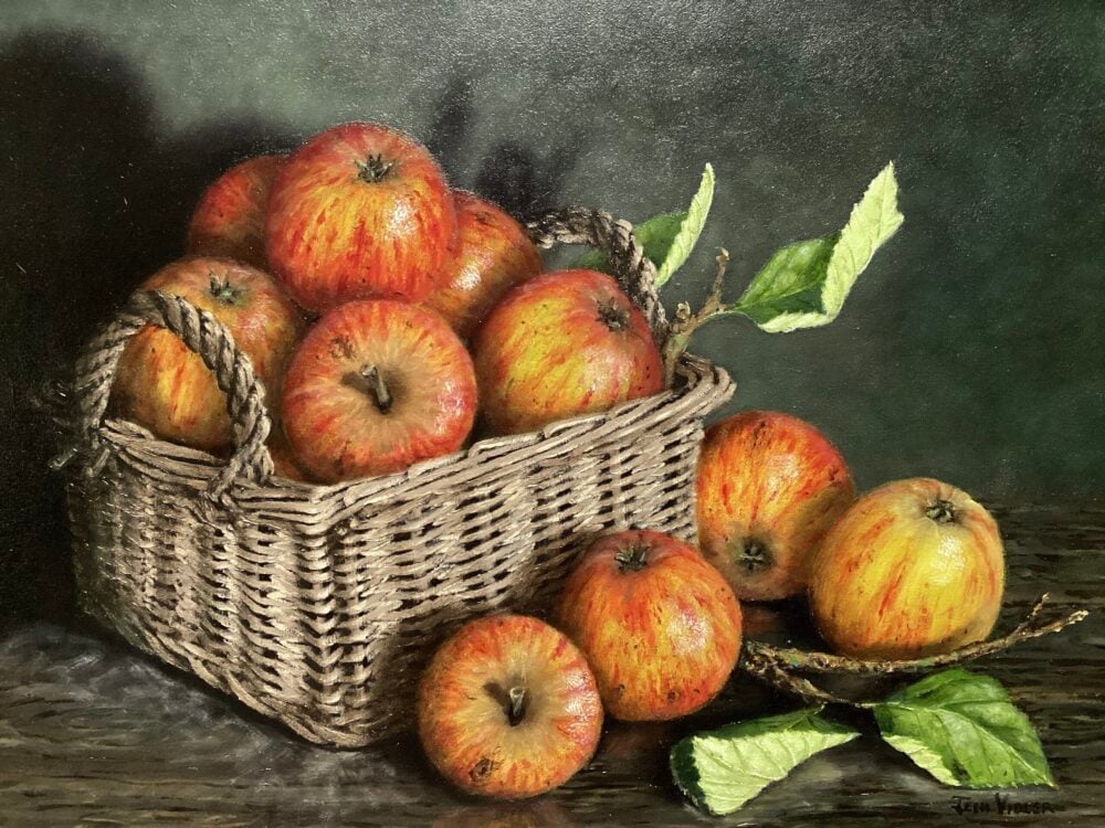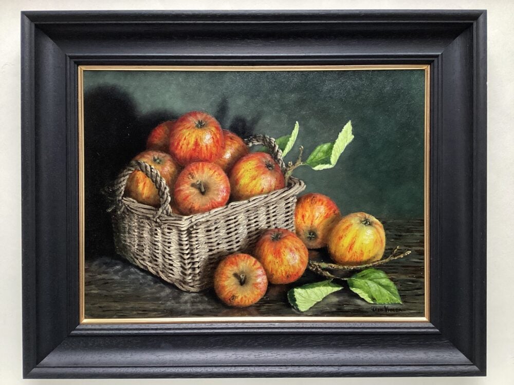 ‘I use oils in traditional still life paintings. These are finely detailed compositions of fruit, cheese, pottery etc in the style of the Dutch old masters.’