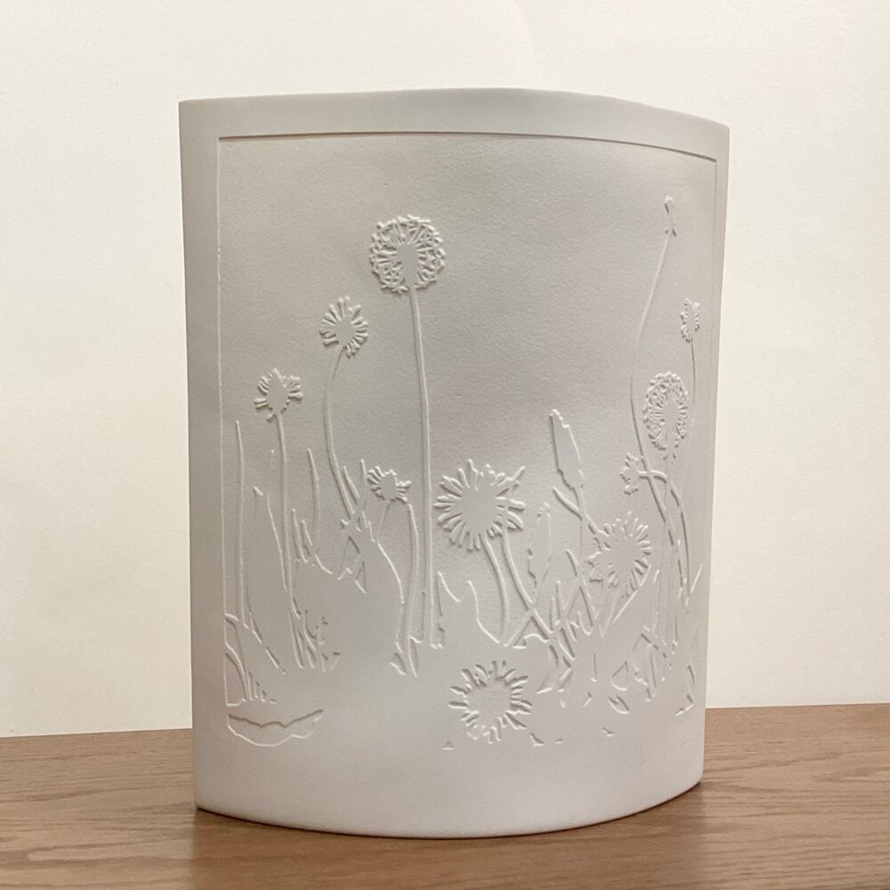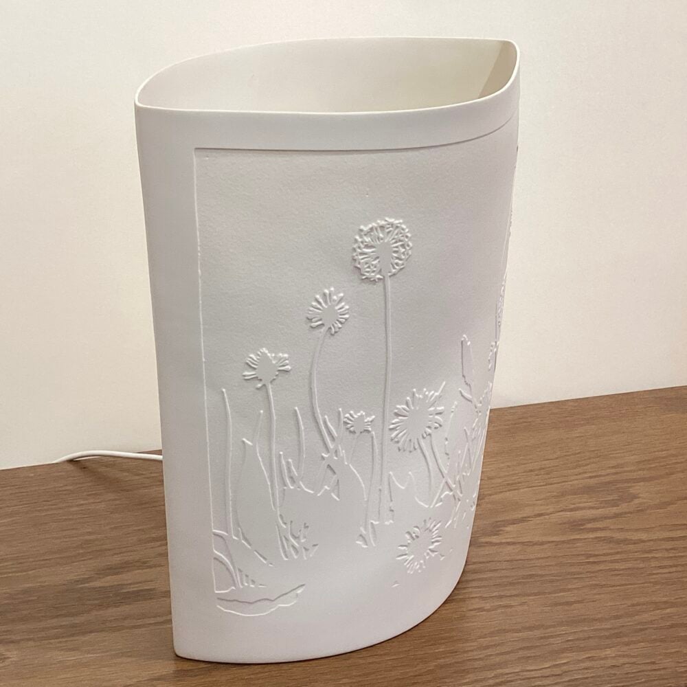 To create The Illustrated Range they are bisque fired before a painstakingly hand-cut paper stencil is applied. After which the piece is sandblasted until the design stands proud. The stencil is removed before high firing which allows the inherent translucency of the porcelain to create a soft silhouette visually as well as texturally. Finally they are diamond polished before being wired up.