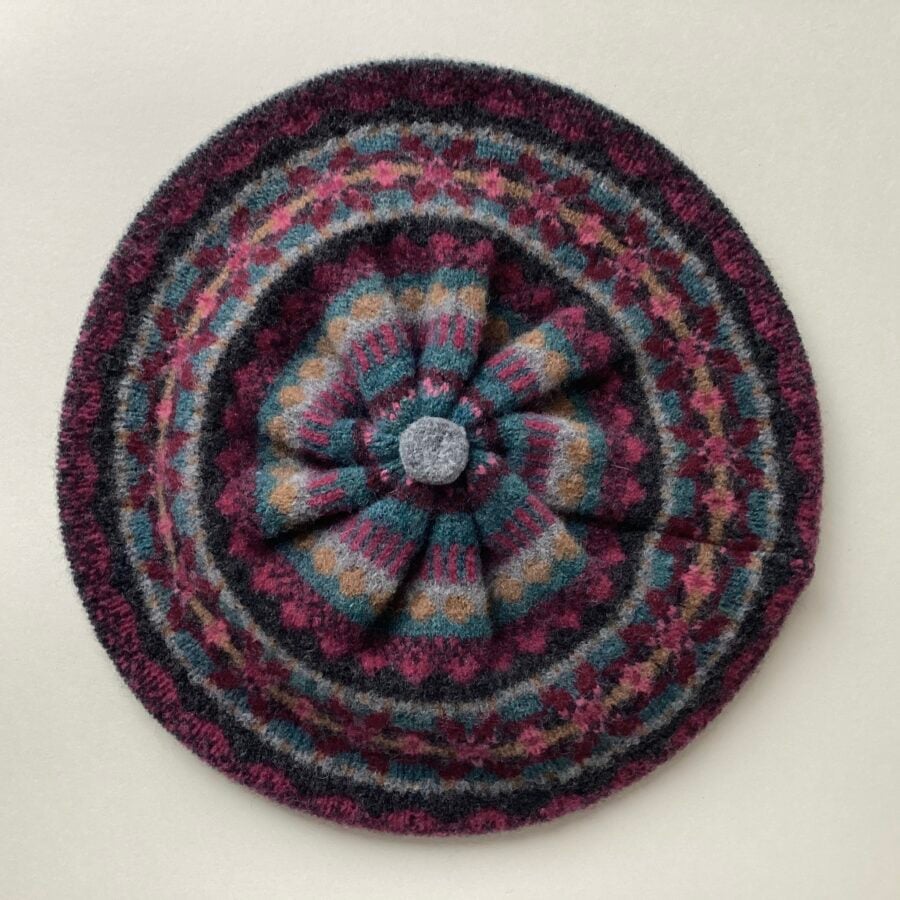 Circular knit Fairisle beret which can be worn like a beanie or in true French style.