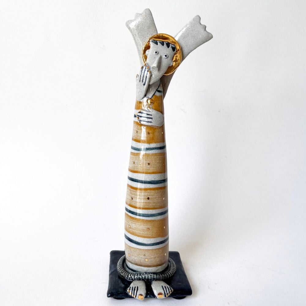 These recent sculptures are hand built individually and each is considered separately. This change in direction followed the death of her youngest child, Tom, at 15 in a steamboat accident.