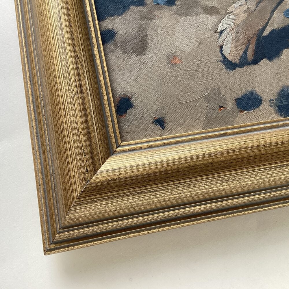 Including 6 cm wide antique gold wood frame with matt grey detailing H 61 x W 61 cm