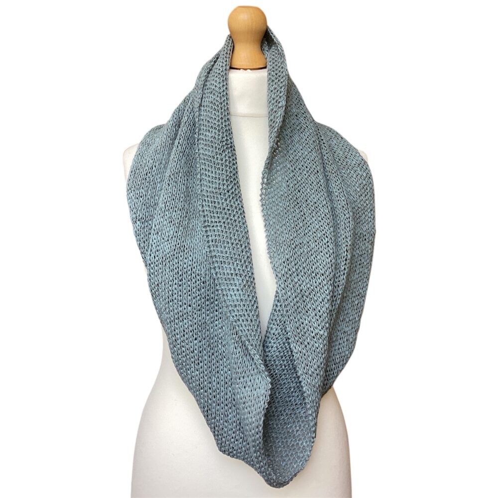 A lovely linen and cotton mix gives the Snood (or Infinity Scarf if you hail from over the water) a very subtle sheen and is so wonderfully soft to the touch, you can’t help but stroke the surface and when you wear it you won’t want to take it off.