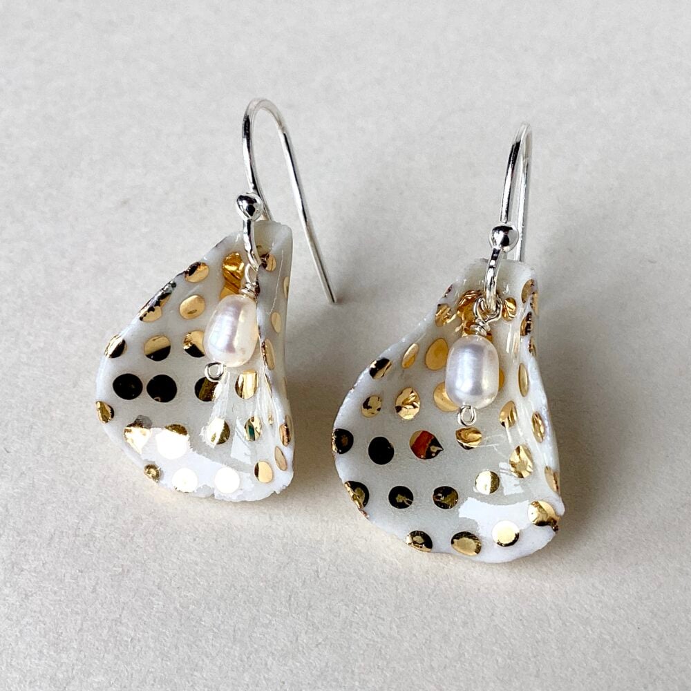 Cream porcelain with Gold Lustre spots and freshwater pearl