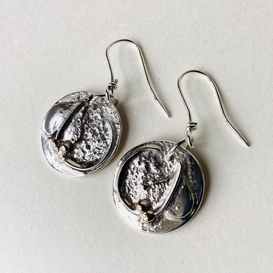 Marian’s jewellery has an organic feel and is inspired by the landscapes of Shropshire, reflections in water and the beauty of the garden. She gained her B.A. in Fine Art painting at St Martin’s School of Art then studied jewellery in Oxford. Fine Art training has given her the freedom to approach jewellery in innovative and less conventional ways. Her jewellery has a natural feel, as though it was found in the woods with textures mimicking moss on stone or bark on trees with a sense of a treasure trove and ancient/futuristic.