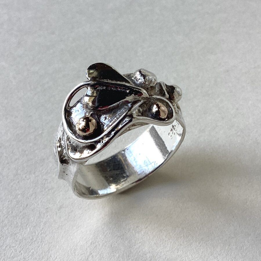 Marian’s jewellery has an organic feel and is inspired by the landscapes of Shropshire, reflections in water and the beauty of the garden. She gained her B.A. in Fine Art painting at St Martin’s School of Art then studied jewellery in Oxford. Fine Art training has given her the freedom to approach jewellery in innovative and less conventional ways. Her jewellery has a natural feel, as though it was found in the woods with textures mimicking moss on stone or bark on trees with a sense of a treasure trove and ancient/futuristic.