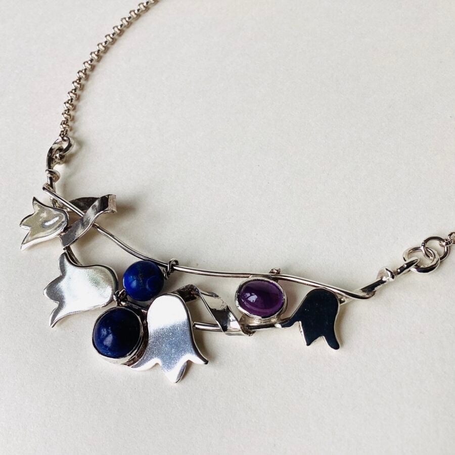 ‘Silver Necklace with Lapis Lazuli and Amethyst’