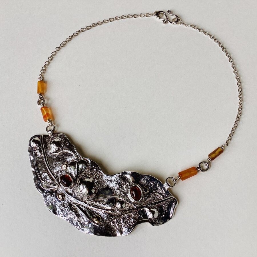 Marian’s jewellery has an organic feel and is inspired by the landscapes of Shropshire, reflections in water and the beauty of the garden. She gained her B.A. in Fine Art painting at St Martin’s School of Art then studied jewellery in Oxford. Fine Art training has given her the freedom to approach jewellery in innovative and less conventional ways. Her jewellery has a natural feel, as though it was found in the woods with textures mimicking moss on stone or bark on trees with a sense of a treasure trove and ancient/futuristic.