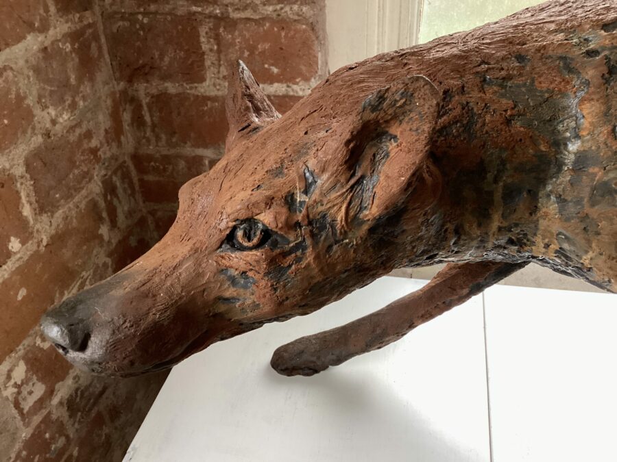 Rachel’s studies in fine art, to BA(hons) level, took place at Bournville and Norwich Schools of Art. She continued to train in the conservation of antiquities and works of art, first at Lincoln College and then at the Royal Pavilion, Brighton. This was followed by a seven year period conserving and restoring wall paintings predominantly in ecclesiastical buildings and stately homes. Rachel ceased the peripatetic way of life required of this type of work in 1996, returning to her studio with the intention of painting. Inspiration to sculpt came along with her newly acquired English Toy Terrier who became her first, very wriggly, subject.